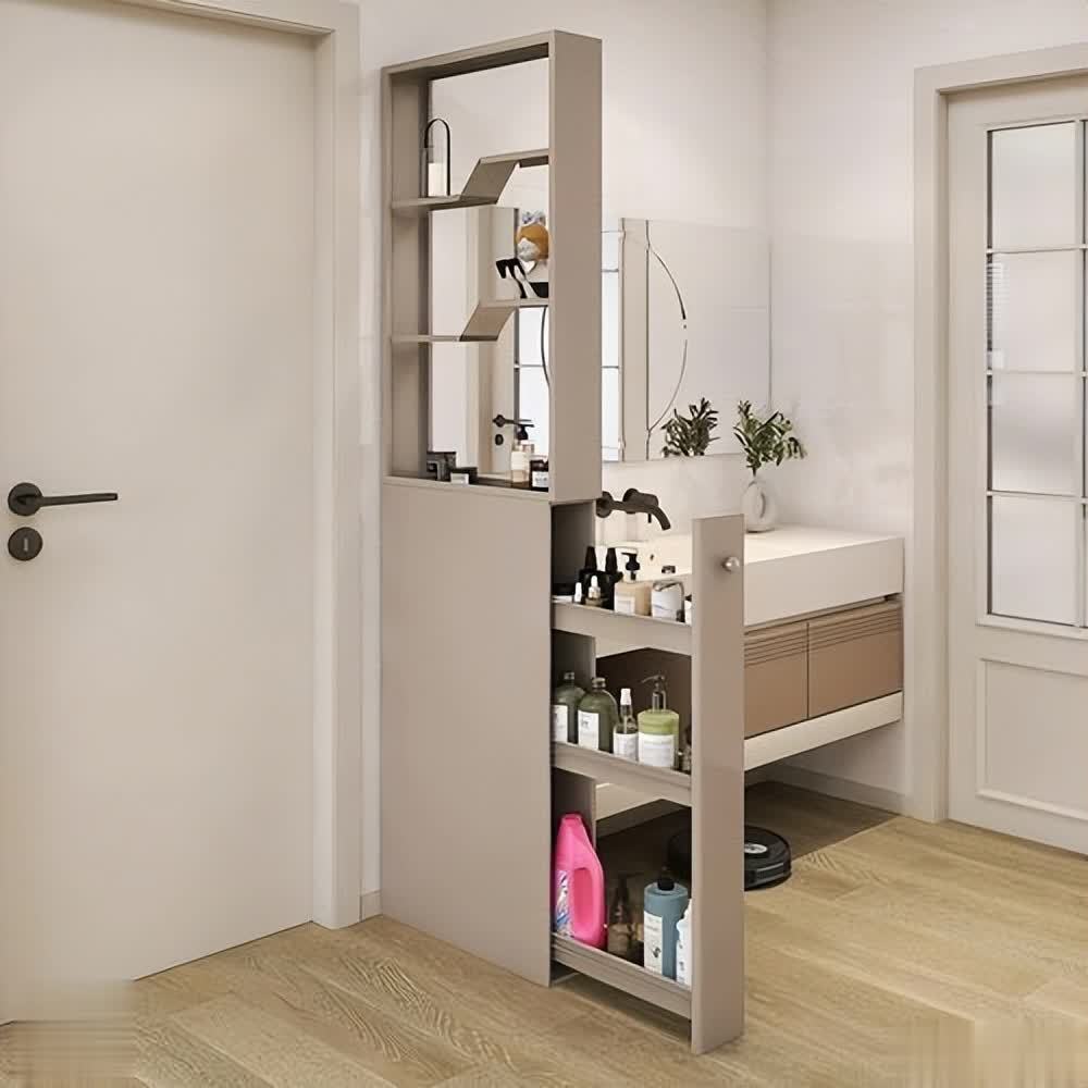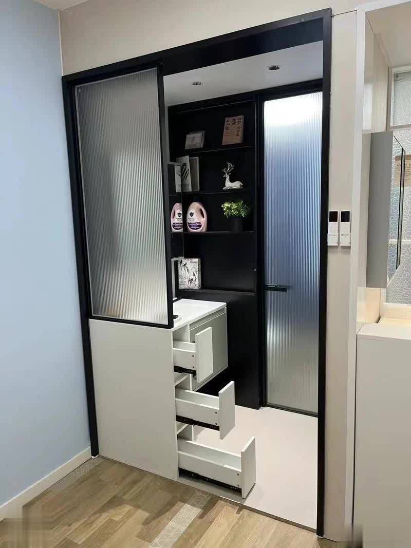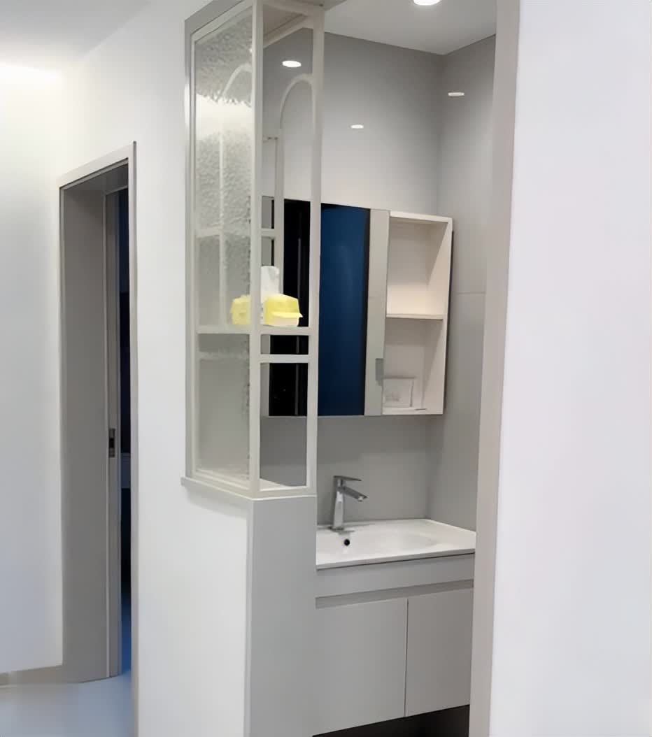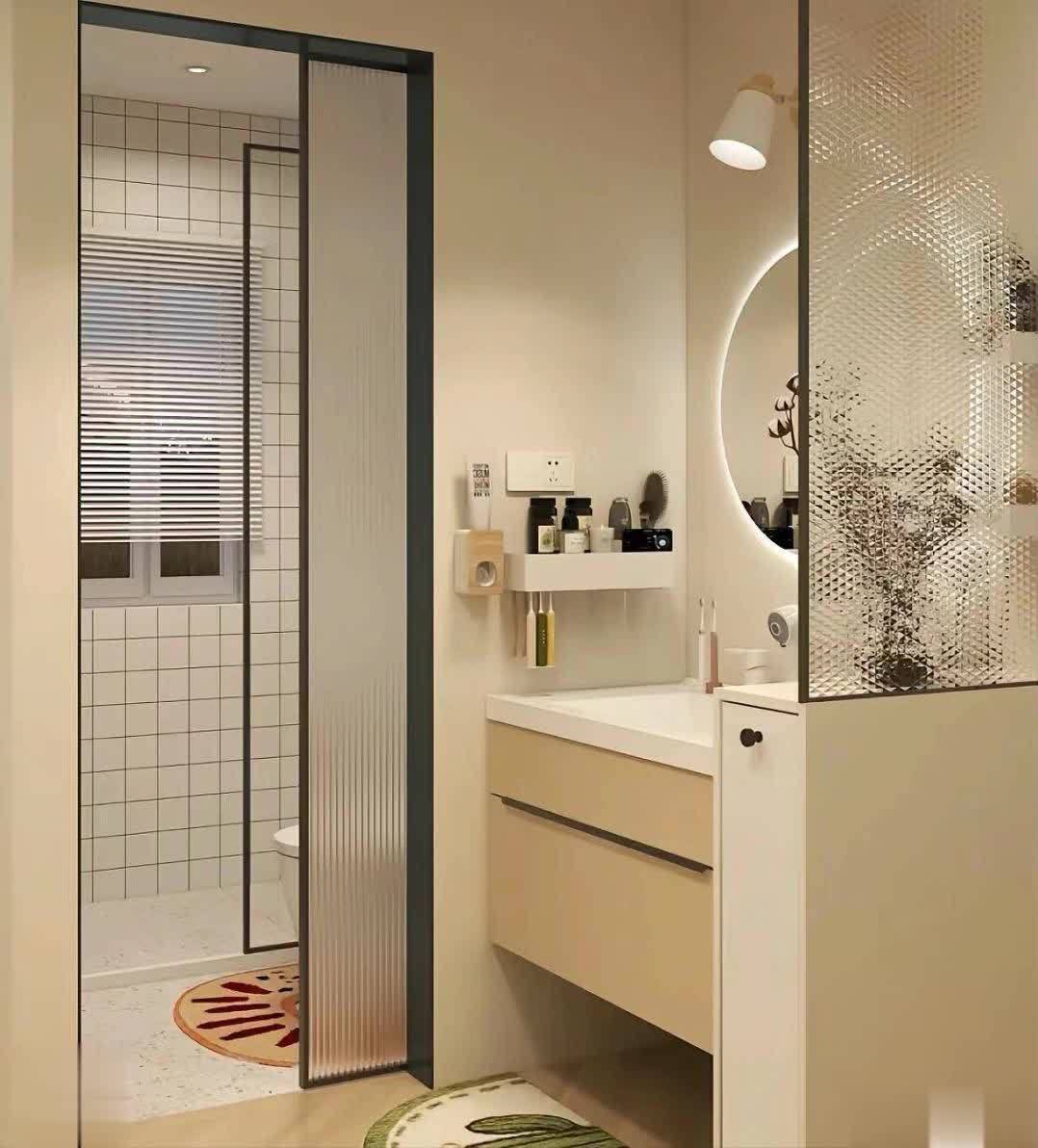 遴荐带有抽屉的浴室柜:抽屉比平开门好用太多,东西一目了然,毋庸蹲下掏最里面。抽屉里面用分隔盒,数据线、头绳、小用具各自归位。或者,定制一个“抽拉式”窄柜:镶嵌在半墙侧面,存放卫生纸、清洁剂等囤货,号称隐形仓库。“半墙绸缪”之是以走红,恰是因为它精确契合了小户型对通透感、收纳力和颜值的三重需求。它用一个奥密的物理结构,给了咱们更多呼吸和收纳的空间。