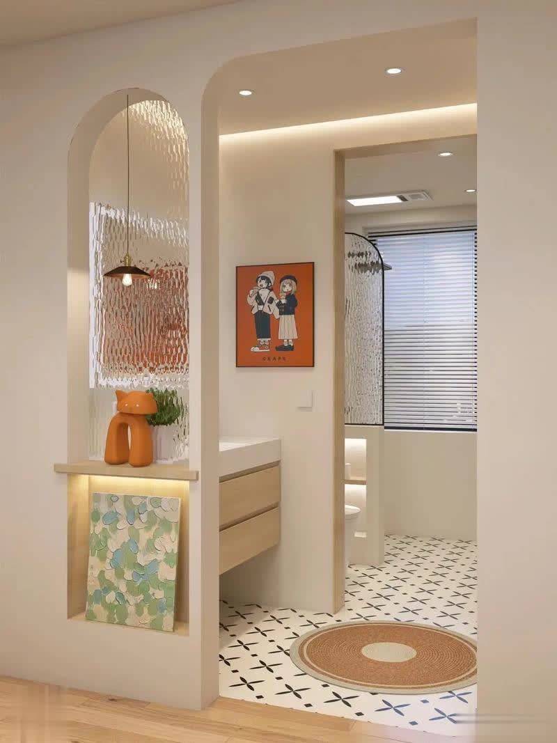 明后和视线平直开脱。一忽儿冲破禁闭感,极度是无窗的暗卫,明后能从其他房间涌入,通盘区域通透起来,早上刷牙心计皆欢然不少。收纳压力减半。这堵矮墙的墙面和台面,一忽儿化作黄金收纳区!底下详备讲明。当然的功能分区。奥密折柳干区与外部空间,又保抓连贯性,极度合适小户型。