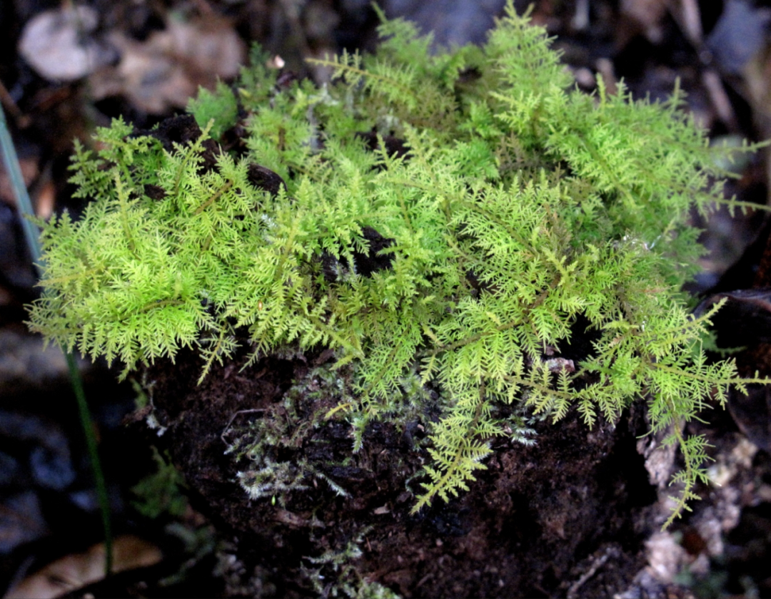 在左溪坑的一处幽谷里,林海伦发现了大桧藓、长柄石杉、对马耳蕨、稀羽鳞毛蕨、斜方复叶耳蕨、狗脊等等苔藓、蕨类植物,标明此处空气湿度终年较高,空气贯通不畅,十分接近类天坑的环境,成为各样苔藓和蕨类植物的滋长乐土。