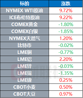纽约商品交游所4月交货的轻质原油期货价钱高涨8.48好意思元,收于每桶95.73好意思元,涨幅为9.72%;5月交货的伦敦布伦特原油期货价钱高涨8.48好意思元,收于每桶100.46好意思元,涨幅为9.22%。