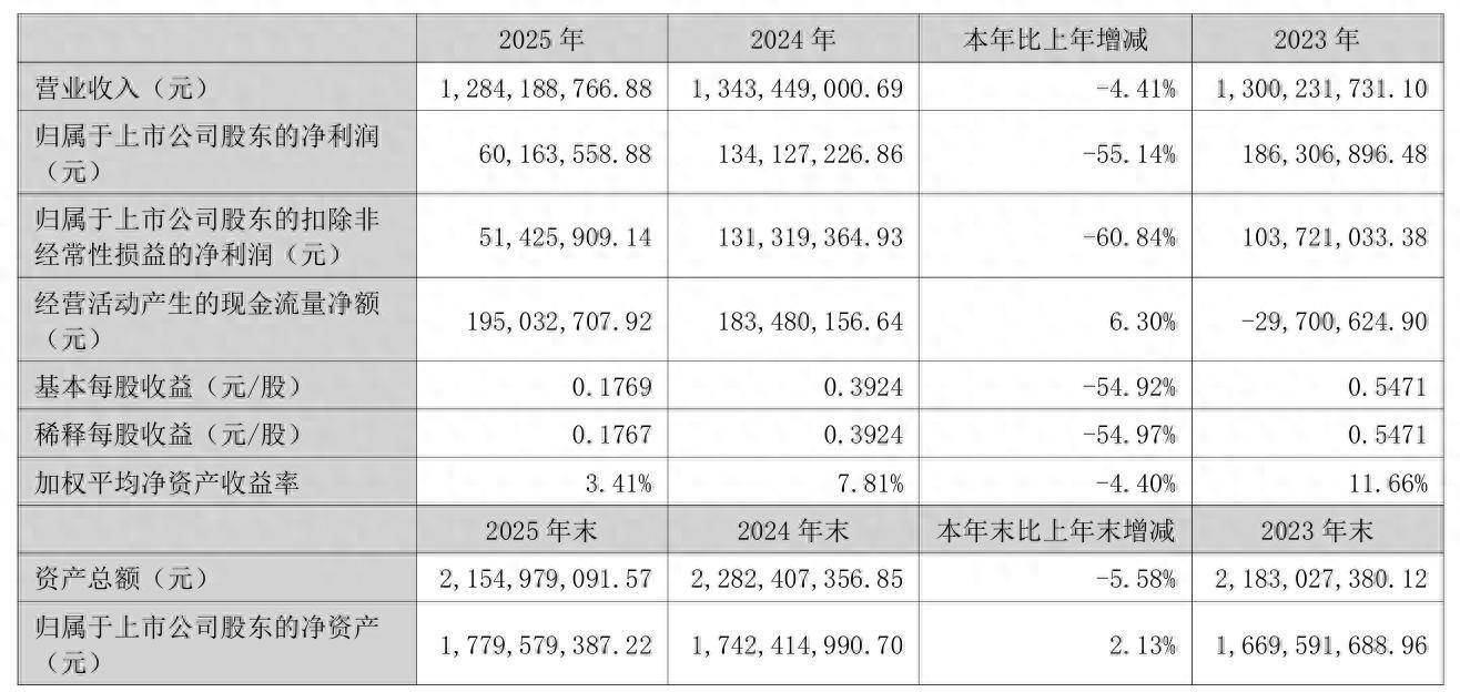 3月30日晚间,中颖电子(300327)发布2025年年度论说,公司全年终了生意收入12.84亿元,同比下降4.41%;归母净利润6016.36万元,同比下降55.14%,为流通第四年下滑。