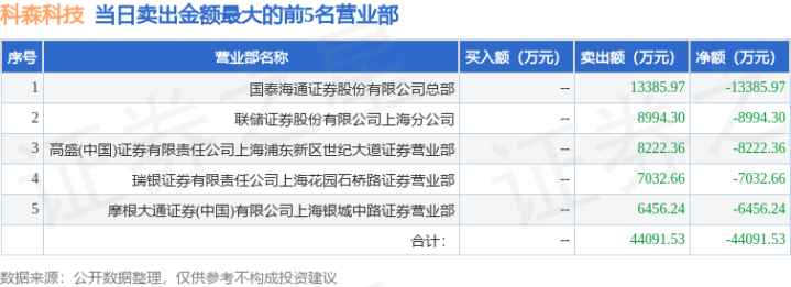 证券之星讯息,沪深来回所2025年8月25日公布的来回公开信息流露,科森科技(603626)因有价钱涨跌幅适度的日换手率达到20%的前五只证券登上龙虎榜。这次是近5个往改日内第4次上榜。