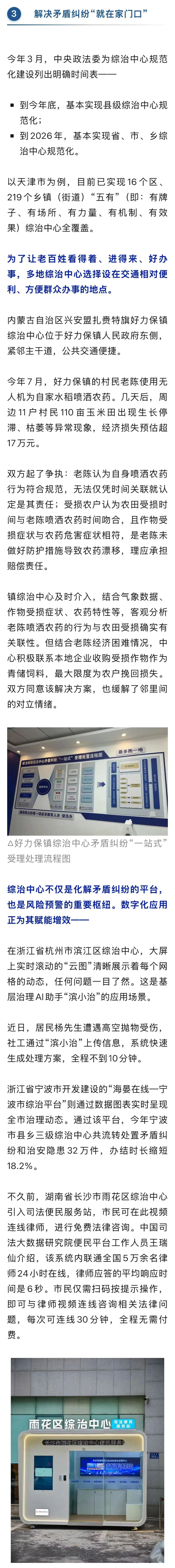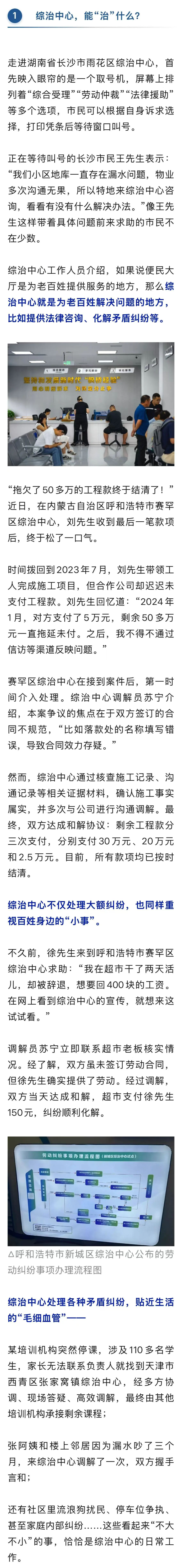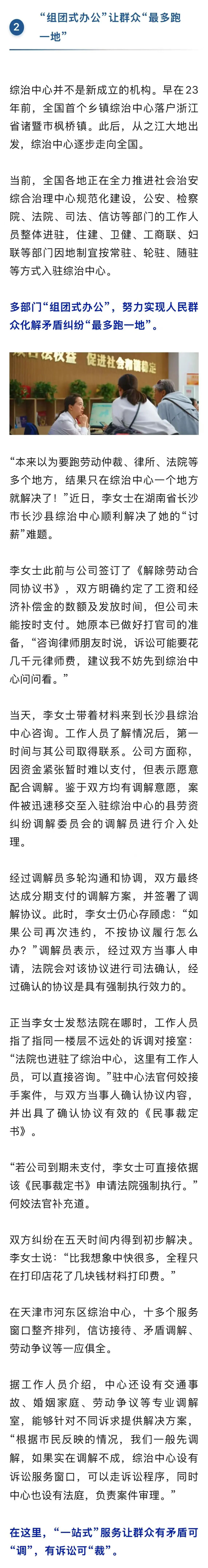 从服务争议到邻里矛盾,从左券纠纷到地盘维权……综治中心为民众提供照章化解矛盾的“一站式”处分决策。不管大事小情,惟关系乎民生拖沓,这里总有东说念主倾听、有机制互助、有概念鼓舞处分。要是遭遇矛盾纠纷,不错就近找综治中心!