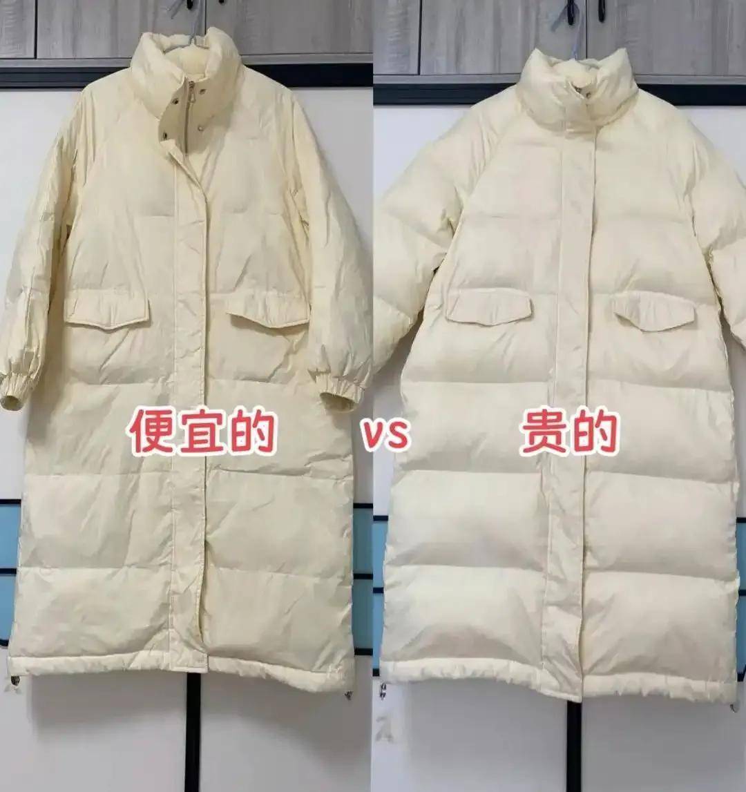 提及来其实也莫得那么难,就单单用感情面料来作念分离,上头低廉的穿戴一眼看上去容易起褶皱,况且内部的绒毛也不及,色调不够地谈,和贵的羽绒服区别果然超等大。