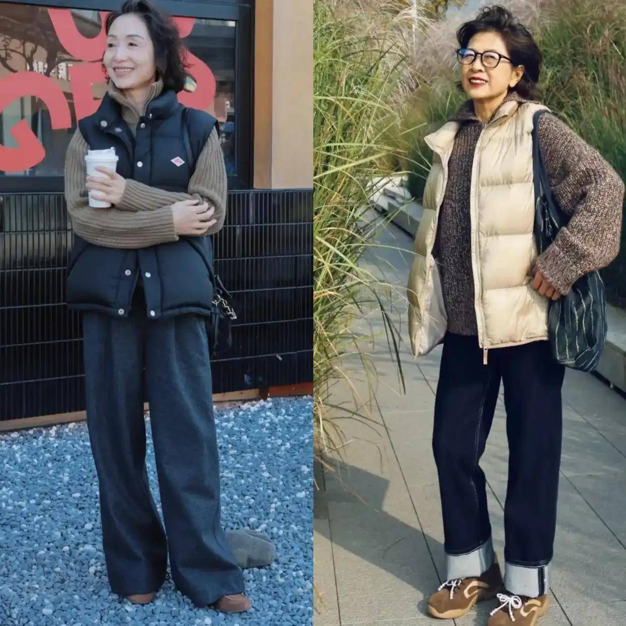 如若合计我方的年事在六七十岁,思要穿的相比多礼少量的,保举你遴选用羽绒马甲,比如上头用一件羽绒马甲内搭诚恳毛衣,加上一条灰色直筒阔腿裤,这么的穿搭还很显瘦,同期很有头绪感,从简大方。